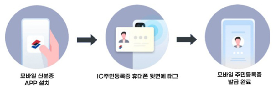 해당 방식은 모바일 신분증 앱을 설치한 뒤, 휴대전화를 IC칩에 태그하여 발급받는 과정으로 이루어지며,