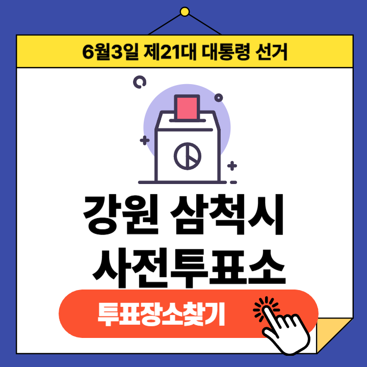 제21대 대통령선거(2025년 6월 3일) 강원특별자치도 삼척시 유권자분들을 위한 사전투표소 정보 안내글입니다.