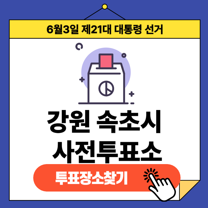 제21대 대통령선거(2025년 6월 3일) 강원특별자치도 속초시 유권자분들을 위한 사전투표소 정보 안내글입니다.