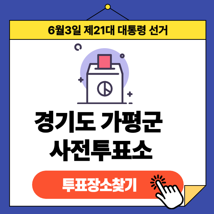 제21대 대통령선거(2025년 6월 3일) 경기도 가평군 유권자분들을 위한 사전투표소 정보 안내글입니다.
