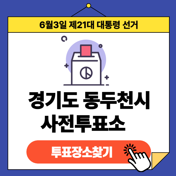 제21대 대통령선거(2025년 6월 3일) 경기도 동두천시 유권자분들을 위한 사전투표소 정보 안내글입니다.
