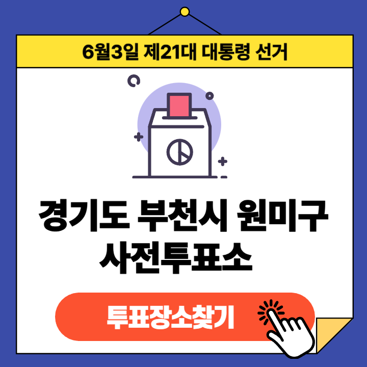 제21대 대통령선거(2025년 6월 3일) 경기도 부천시 원미구 유권자분들을 위한 사전투표소 정보 안내글입니다.