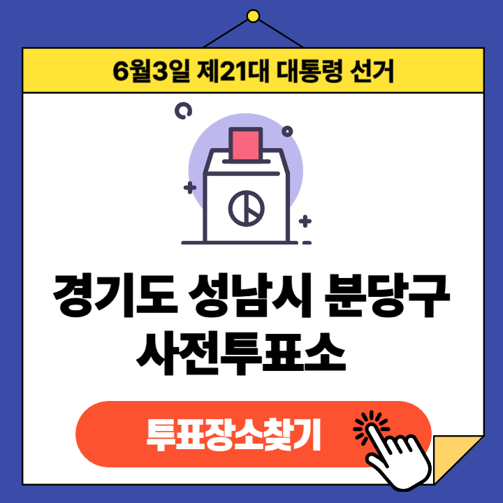 제21대 대통령선거(2025년 6월 3일) 경기도 성남시 분당구 유권자분들을 위한 사전투표소 정보 안내글입니다.