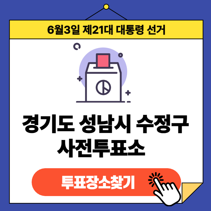 제21대 대통령선거(2025년 6월 3일) 경기도 성남시 수정구 유권자분들을 위한 사전투표소 정보 안내글입니다.