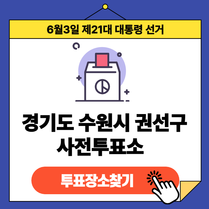 제21대 대통령선거(2025년 6월 3일) 경기도 수원시 권선구 사전투표장소 유권자분들을 위한 사전투표소 정보 안내글입니다.