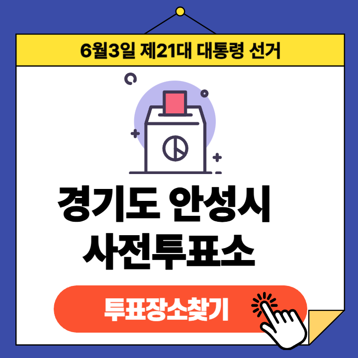 제21대 대통령선거(2025년 6월 3일) 경기도 안성시 유권자분들을 위한 사전투표소 정보 안내글입니다.