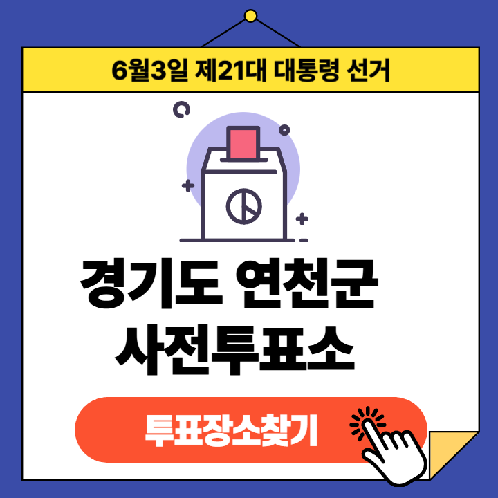 제21대 대통령선거(2025년 6월 3일) 경기도 연천군 유권자분들을 위한 사전투표소 정보 안내글입니다.