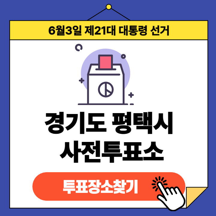 제21대 대통령선거(2025년 6월 3일) 경기도 평택시구 유권자분들을 위한 사전투표소 정보 안내글입니다.