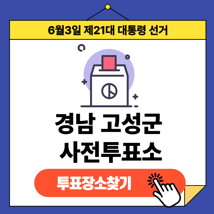 제21대 대통령선거(2025년 6월 3일) 경상남도 고성군 유권자분들을 위한 사전투표소 정보 안내글입니다.