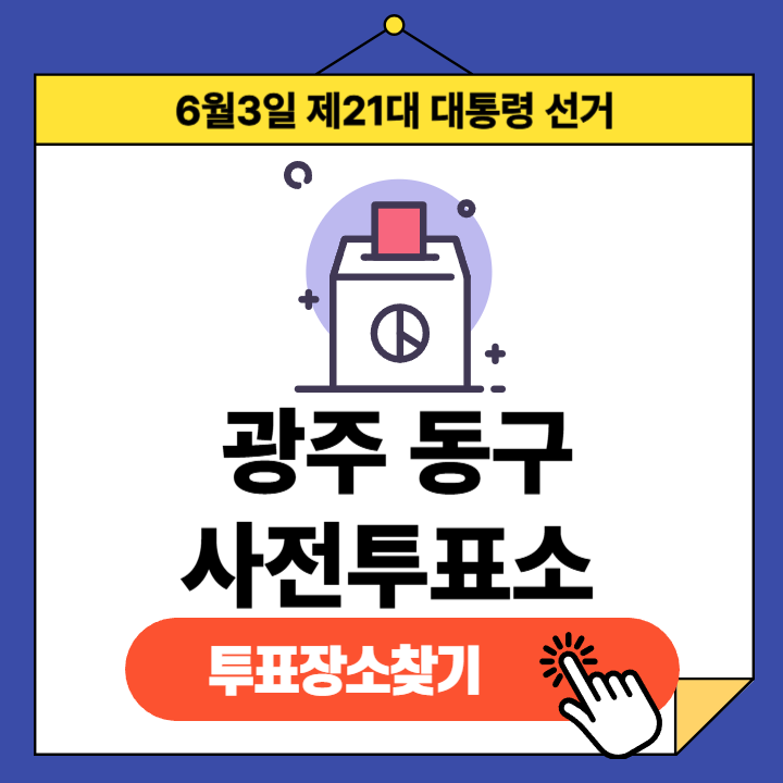 제21대 대통령선거(2025년 6월 3일) 광주광역시 동구 유권자분들을 위한 사전투표소 정보 안내글입니다.