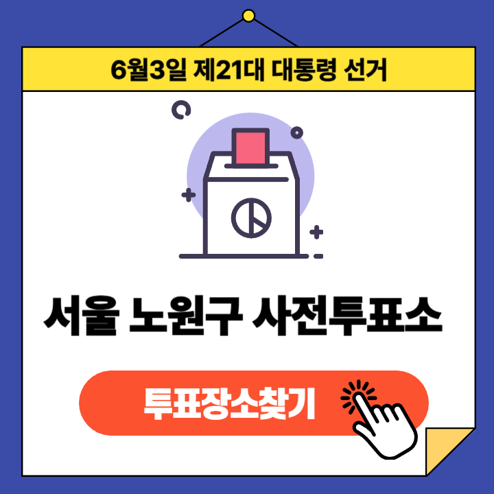 제21대 대통령선거(2025년 6월 3일) 서울특별시 노원구 유권자분들을 위한 사전투표소 정보 안내글입니다.