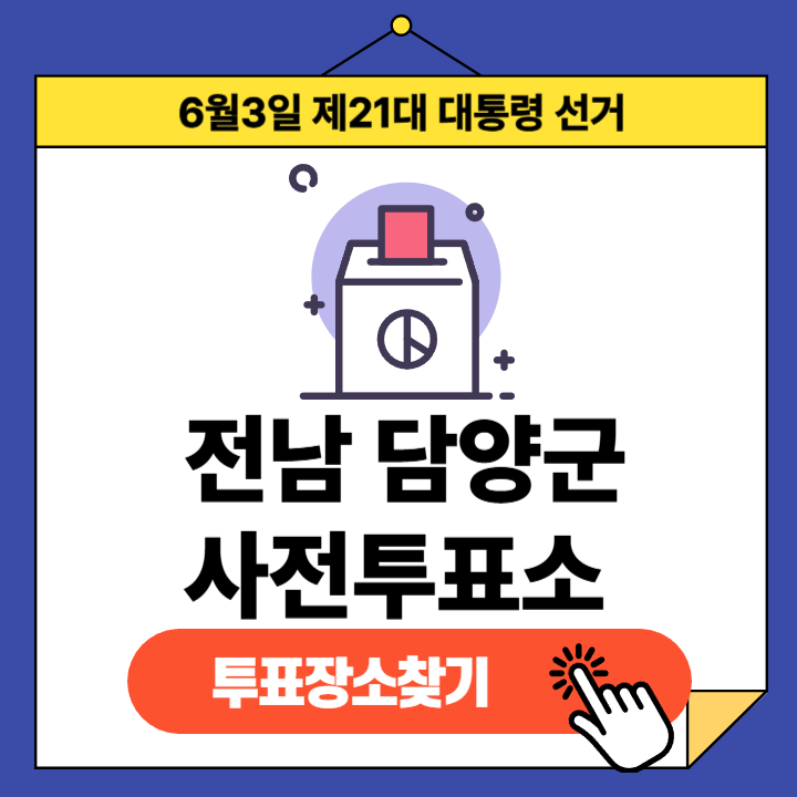 제21대 대통령선거(2025년 6월 3일) 전라남도 담양군 유권자분들을 위한 사전투표소 정보 안내글입니다.