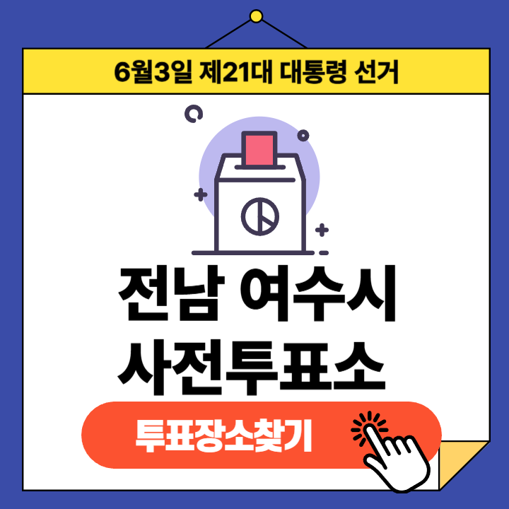 제21대 대통령선거(2025년 6월 3일) 전라남도 여수시 유권자분들을 위한 사전투표소 정보 안내글입니다.