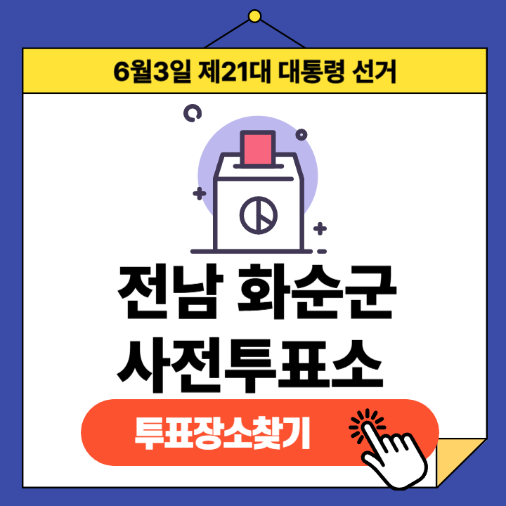 제21대 대통령선거(2025년 6월 3일) 전라남도 화순군 유권자분들을 위한 사전투표소 정보 안내글입니다.