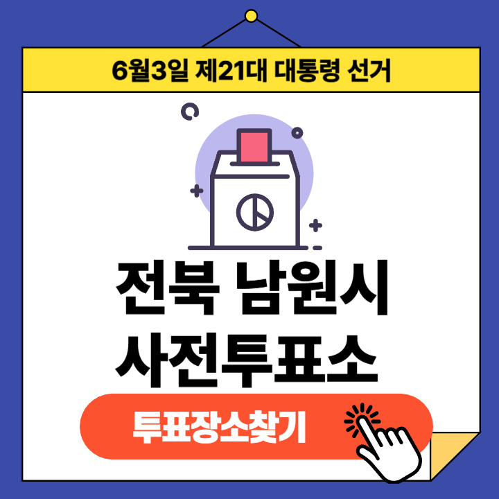 제21대 대통령선거(2025년 6월 3일) 전북특별자치도 남원시 유권자분들을 위한 사전투표소 정보 안내글입니다.