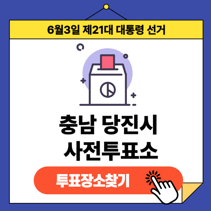 제21대 대통령선거(2025년 6월 3일) 충청남도 당진시 유권자분들을 위한 사전투표소 정보 안내글입니다.