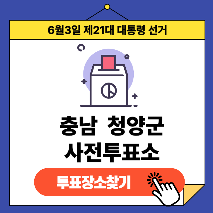 제21대 대통령선거(2025년 6월 3일) 청남도 청양군 유권자분들을 위한 사전투표소 정보 안내글입니다.