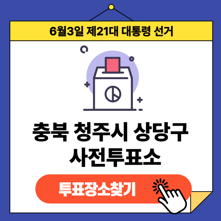 제21대 대통령선거(2025년 6월 3일) 충청북도 청주시 상당구 유권자분들을 위한 사전투표소 정보 안내글입니다.