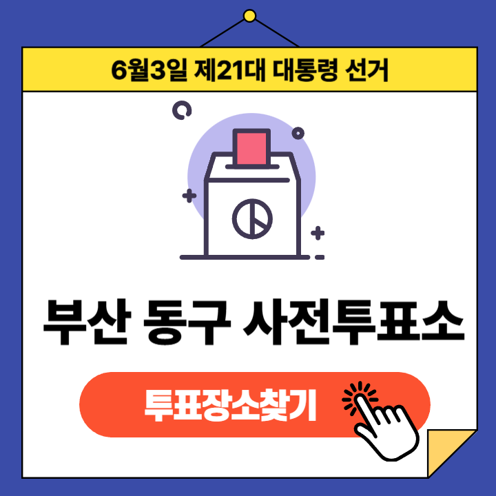 제21대 대통령선거(2025년 6월 3일) 부산광역시 동구 유권자분들을 위한 사전투표소 정보 안내글입니다.