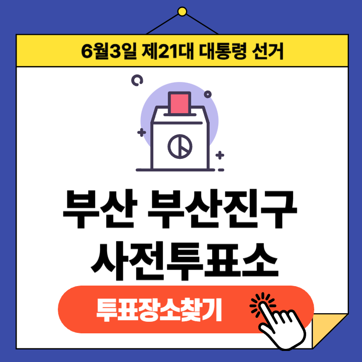 제21대 대통령선거(2025년 6월 3일) 부산광역시 부산진구 유권자분들을 위한 사전투표소 정보 안내글입니다.