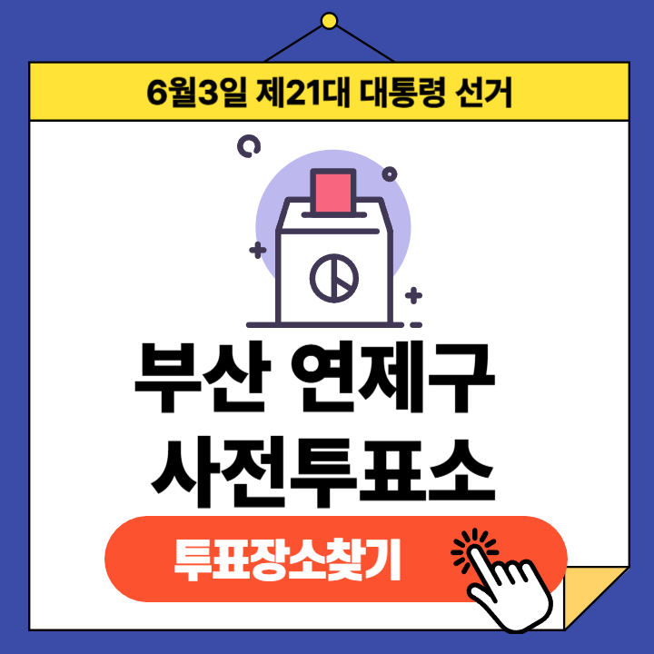 제21대 대통령선거(2025년 6월 3일) 부산광역시 연제구 유권자분들을 위한 사전투표소 정보 안내글입니다.