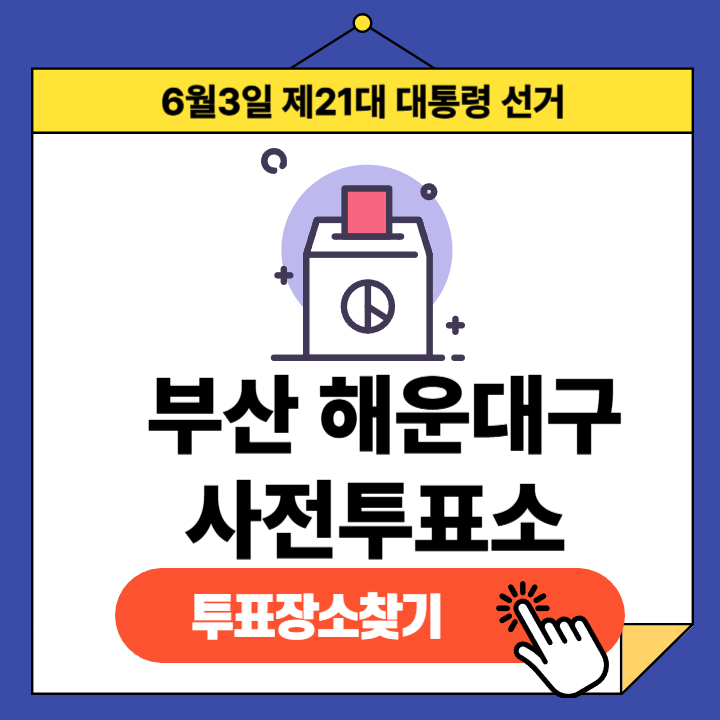 제21대 대통령선거(2025년 6월 3일) 부산광역시 해운대구 유권자분들을 위한 사전투표소 정보 안내글입니다.