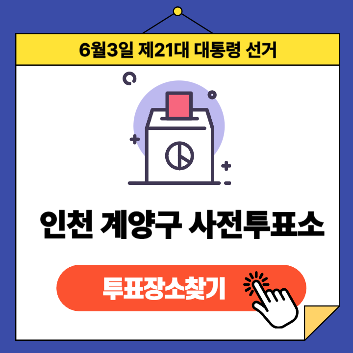 제21대 대통령선거(2025년 6월 3일) 인천광역시 계양구 유권자분들을 위한 사전투표소 정보 안내글입니다.