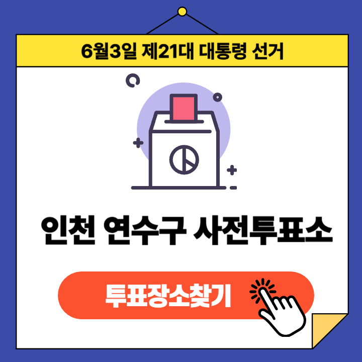 제21대 대통령선거(2025년 6월 3일) 인천광역시 연수구 유권자분들을 위한 사전투표소 정보 안내글입니다.
